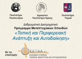 Διϊδρυματικό Διατμηματικό Πρόγραμμα Μεταπτυχιακών Σπουδών «Τοπική και Περιφερειακή Ανάπτυξη και Αυτοδιοίκηση» - 2η πρόσκληση υποβολής αιτήσεων - παράταση προθεσμίας
